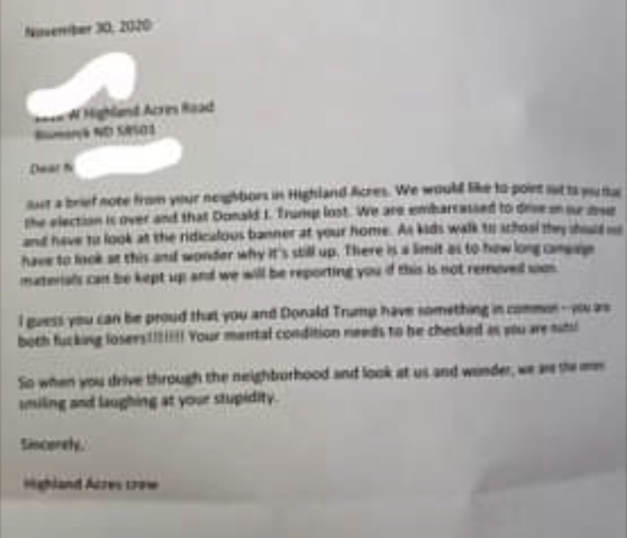 All of these were collected today, in about an hour. Some are local, like the Bismarck city attorney, Janelle Combs, stating that Nazi morality was acceptable because morality is determined by the ruling party. Some are new, some are old. Notice that killing people is a common theme. What’s more loving than murdering babies and old people, right? What all of these examples are, is just the tip of the iceberg. A popular 2020 analogy is the Titanic, none of us who see the light of January 1, 2021 will escape the sinking ship of 2020. The iceberg bearing down on us, isn’t Covid-19, it’s hateful, lazy, uncaring people who would much rather assume that someone else has fixed the ills of society. Better to be a “bleeding heart liberal” than have to get off of your couch, out of your routine, or discover the truth. The truth is: you and I, our choices, our fear, are the reasons that “Covid-19” has destroyed so much.