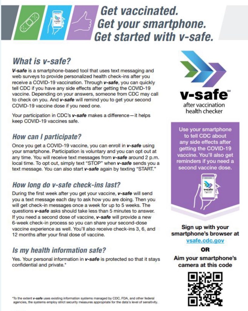 We are told that the vaccines are safe because the V-safe program was created to catch adverse events. Notice it doesn’t say prevent them. The V-safe program does not actually provide any increase in safety.
