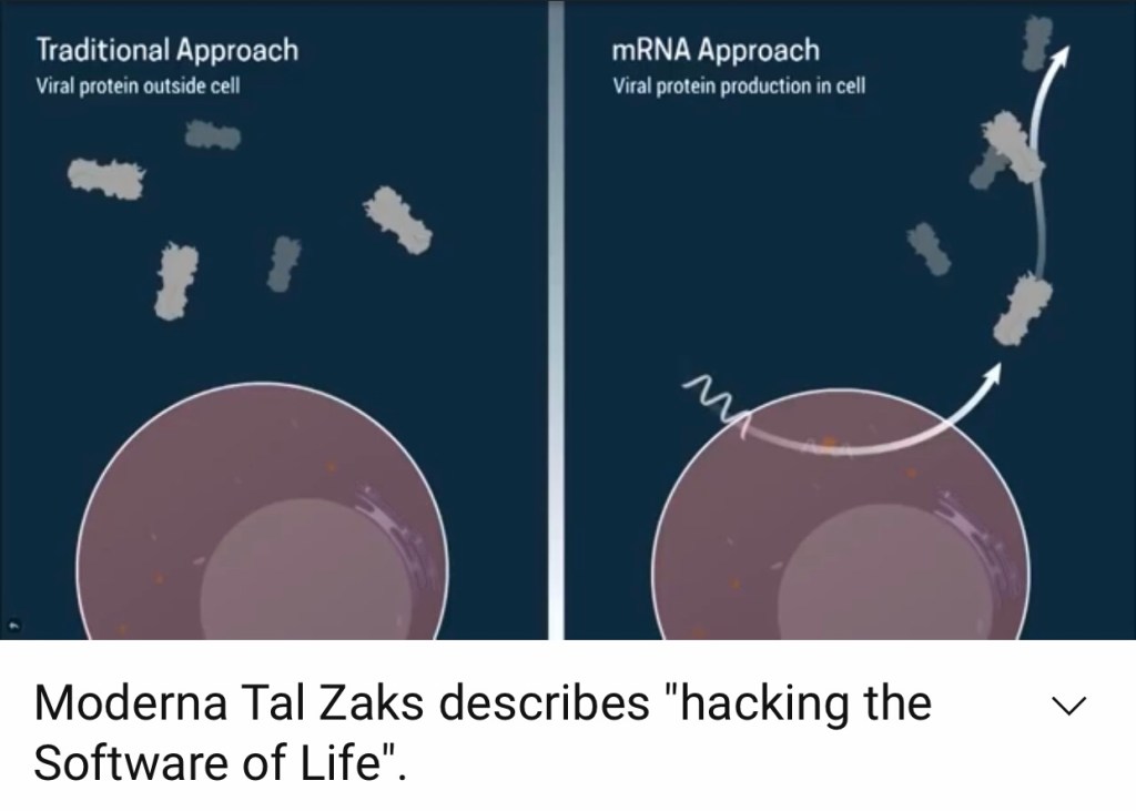 The majority of EUA Covid-19 vaccines are based on mRNA techniques, the heralded new frontier in health cures. Yet, when Stéphane Bancel CEO of Moderna reportedly asked Tal Zaks, CMO of Moderna “Is this gonna work?”, Zaks replied, “I don’t know, but we’ve got all the pieces to try… so we should try.” Again, I don’t know about you, but to me, that’s not a great indicator that this is gonna work.